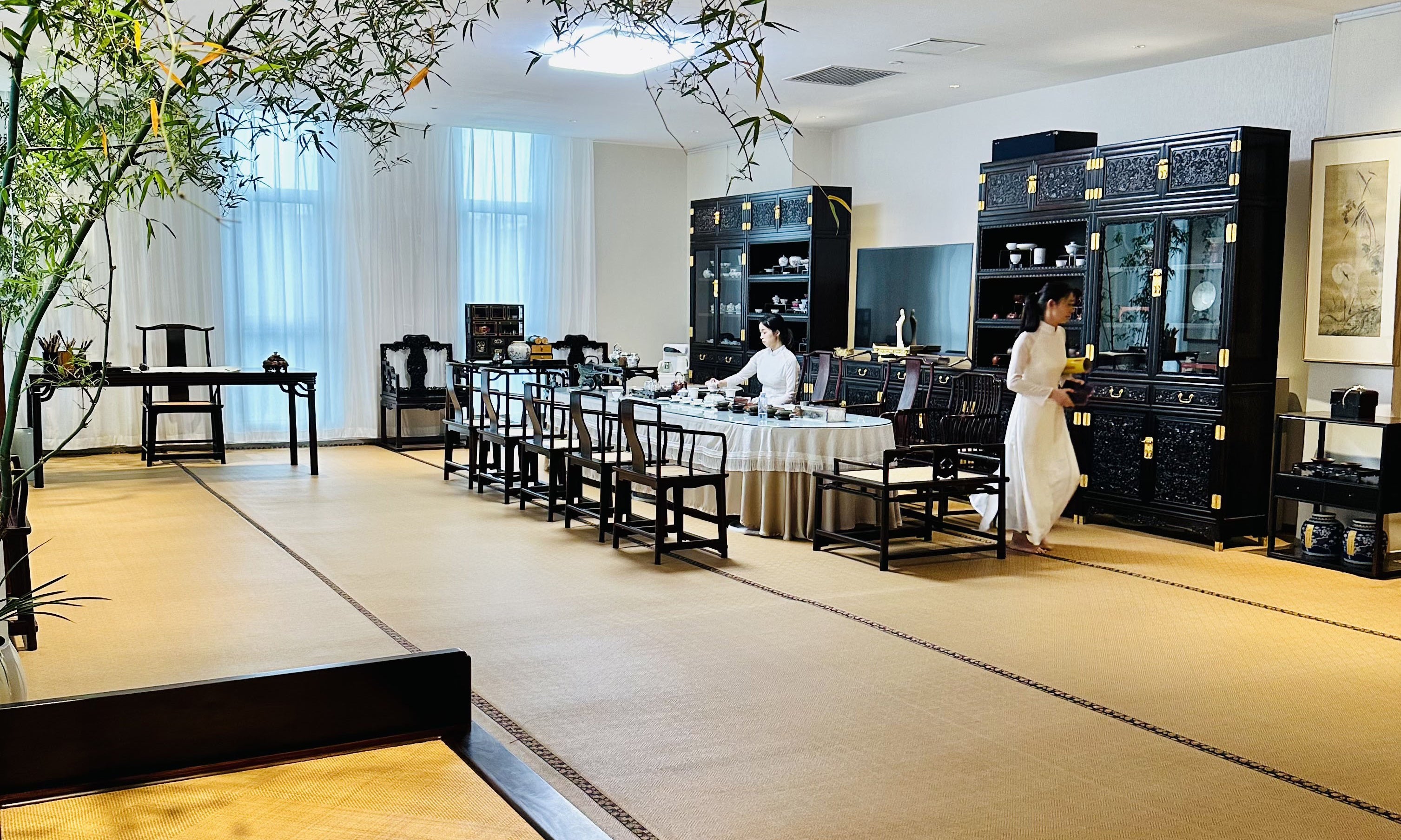 The Sanya National Base for International Cultural Trade's global independent platform conducted cross-border live streams, showcasing intangible cultural heritage items such as Song Dynasty tea room aesthetics and "Guanxianghong" black tea as "Chinese cultural luxury goods" to the world. During the 2024 "Colorful China, Wonderful Festivals" event, a "tea + tourism" model was formed by linking cultural tourism IPs, reaching over 740,000 people overseas.