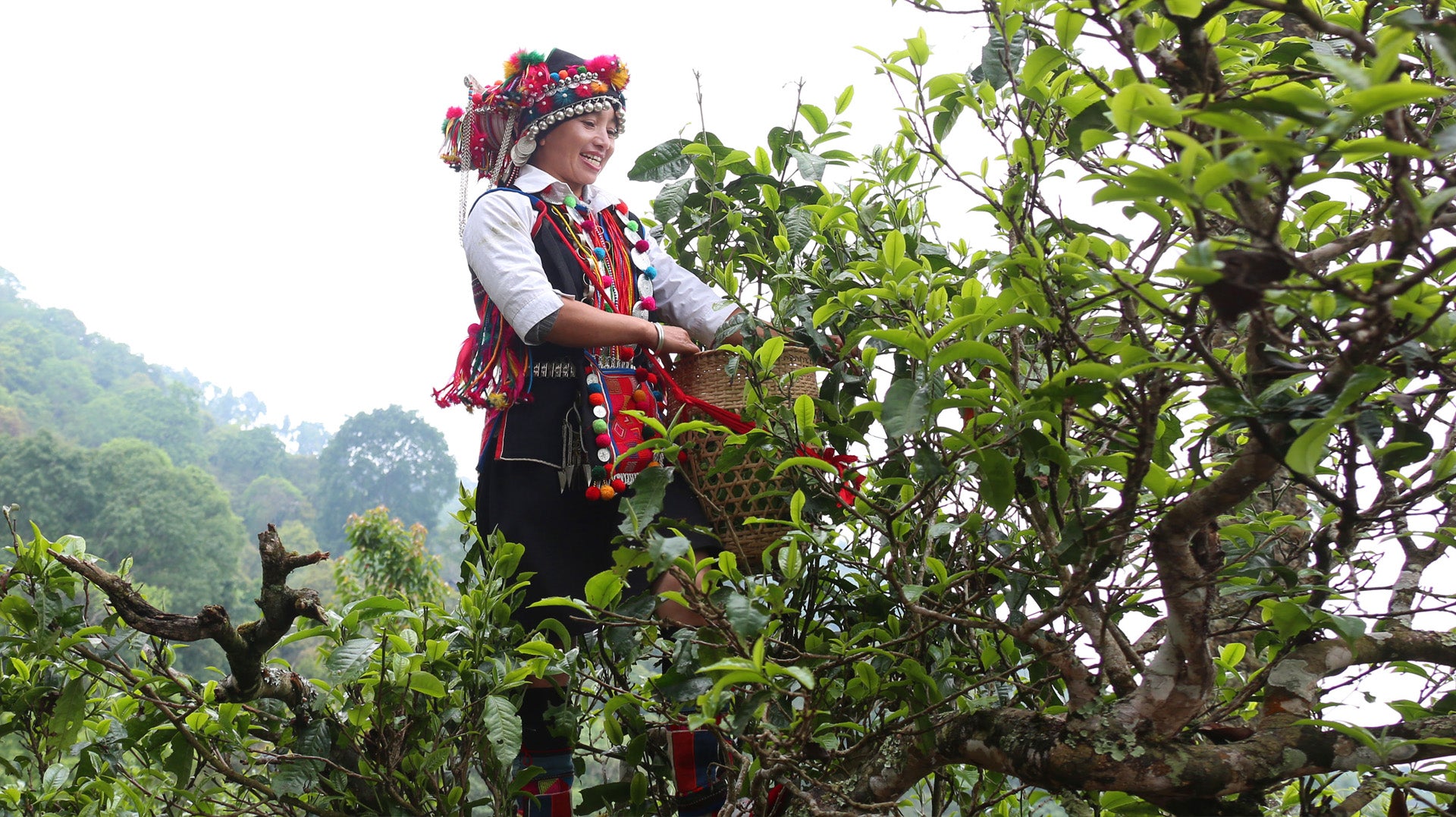Che Jie's younger sister, Che Dian, is the most vibrant sight in the tea mountains. She married not far away and returns to her parents' home to help during the tea season. She can easily step onto a log placed over a tea tree, her hands moving lightly and swiftly among the buds and leaves, almost like dancing. When she's in high spirits, she sings ancient songs of the Aini people, and Che Jie echoes from another tree. The songs, mingled with the aroma of tea, resonate through the valley, more beautiful than birdsong.
