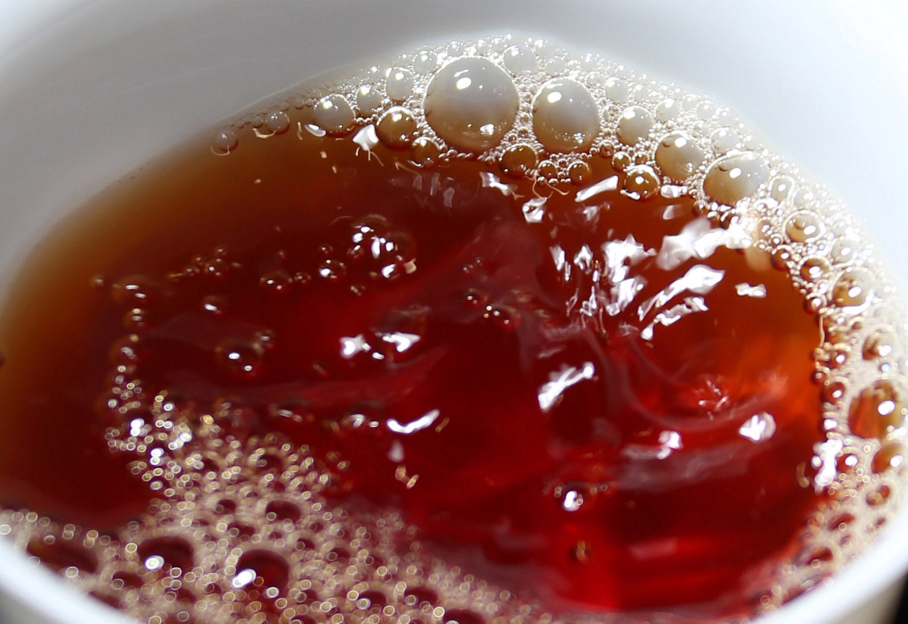 Take 8 grams of dry tea, awaken it with boiling water at 100°C, and brew it formally after one rinse. When the first infusion is poured out, the liquor color is stunning—it is rich red like amber, clear and bright, with no turbidity or sediment on the cup wall, and a delicate golden rim around the edge. As the number of infusions increases, the liquor color turns slightly pale red, but remains as bright as the first brew. This not only confirms the characteristic that "aged tea is valued for its purity" but also indicates that it was not contaminated at all during the aging process and has undergone a pure transformation.