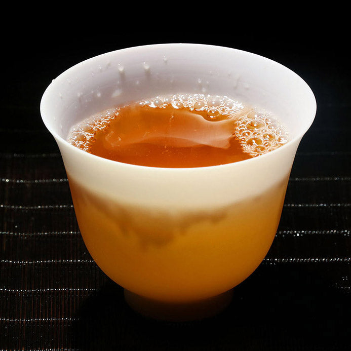 Foshou Tea yields an amber liquor with a golden rim that reflects its quality