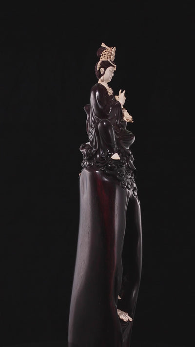 Small-leaf red sandalwood inlaid with mammoth ivory: Width: 13.2cm, Thickness: 11cm, Net Height: 64.8cm