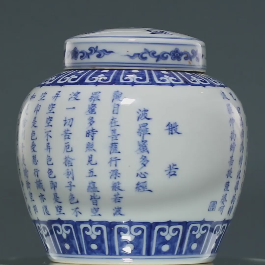 青花心经天字罐:口直径:6.5cm,高:11..5cm,腹径:11.5cm
