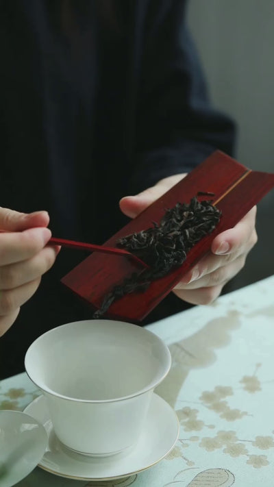 印度小叶紫檀,又称檀香紫檀。这套司茶三件为茶道过程中使用的基本配件,分别是:茶拔、茶夹、茶则。茶则、茶拨的折沿令人赏心悦目,观感爽利。茶夹的齿痕细致,细节到位。其材质以小叶紫檀和黄杨木榫卯拼接,木纹撞色巧妙,气质简约清雅,品质感纯然,体现木制茶器的贵气。